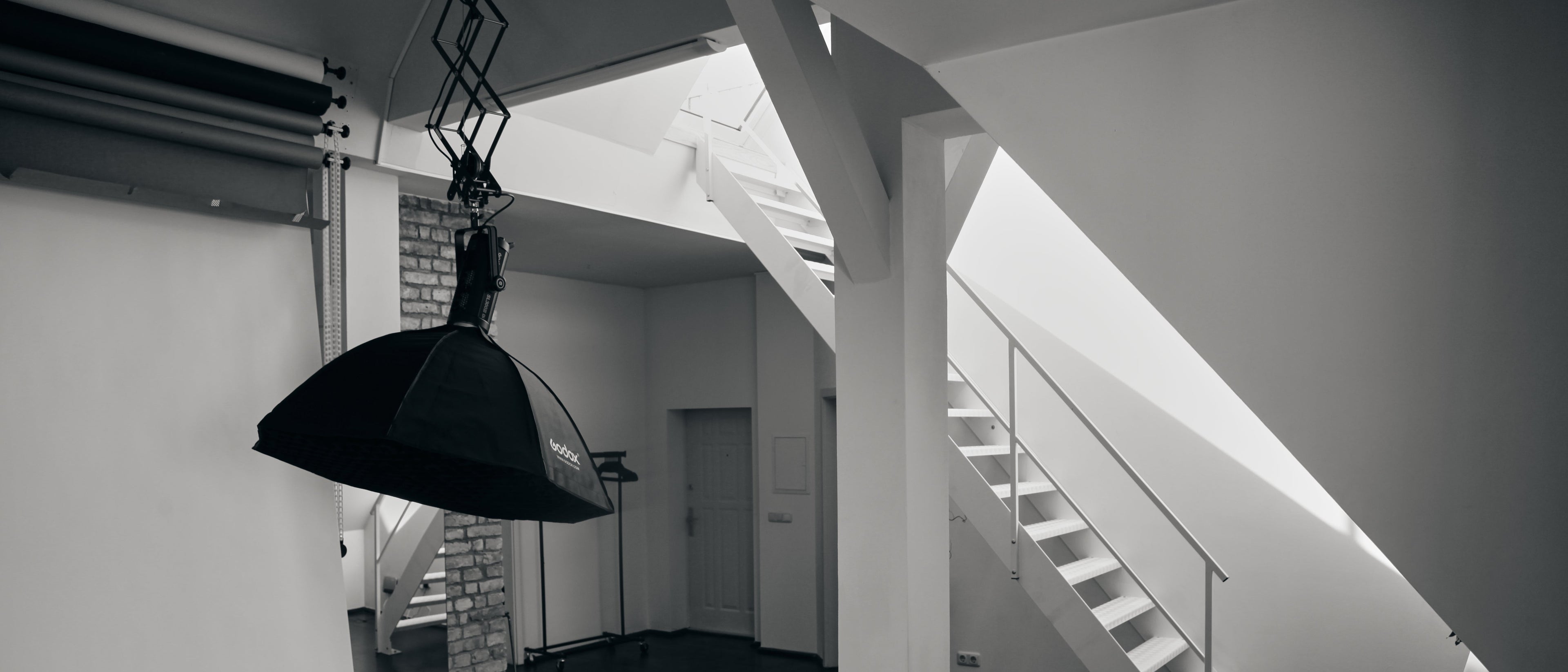 Natürliches Tageslicht, pantografische Studiobeleuchtung und Zugang zum Dach.